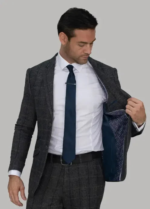 Wenn du auf der Suche nach einem zeitlosen und stilvollen Herrenanzug bist, denkst du sicher an einen Look, der sowohl elegant als auch beeindruckend ist. Genau das bekommst du mit dem Grey Navy Tweed Anzug für Herren. Dieser Anzug verleiht dir ein raffiniertes Auftreten und lässt dich selbstbewusst und professionell wirken.