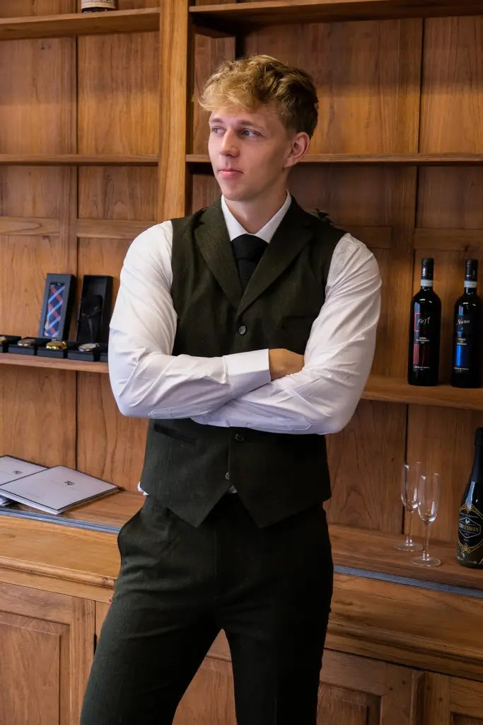 Der CASTLESON Chief – Gentleman Moss Tweed ist mehr als ein Kleidungsstück. Er ist eine Investition in dein Erscheinungsbild, in die Erinnerungen, die du schaffst, und in den Eindruck, den du hinterlässt. Entscheidest du dich für diesen Anzug, entscheidest du dich für eine Ausstrahlung, die sowohl kraftvoll als auch einladend ist. Für Komfort — aber auch für den Luxus eines einzigartigen Designs. Für Details, die man erst auf den zweiten Blick bemerkt, und für ein Gefühl, das du jedes Mal hast, wenn du ihn anziehst: Heute zählt. Dies ist dein Tag, dein Moment.